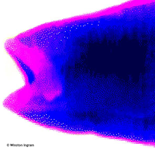 Professor Winston Ingram has worked as a scientist, photographer, artist and musician for over fifty years. He is currently retired and resides in London. These images are from his work with fish. He used a stereo microscope with a thermal imaging camera experimenting with combining brightfield, darkfield, and fluorescence microscopy techniques.